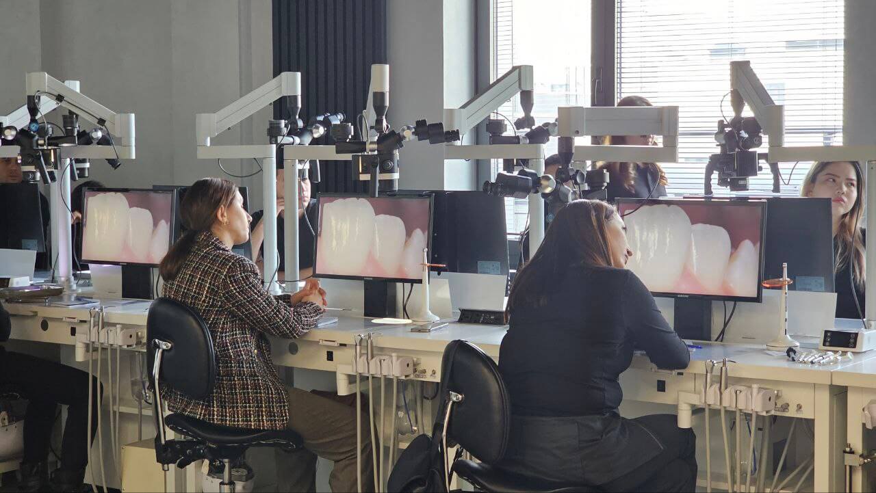 Практическая часть семинара включала выполнение реставраций на высокоэстетичных моделях по силиконовому ключу и методом «hands free» из современных композитных материалов, таких как Estelite Asteria и OMNICHROMA. Участники также имели возможность наблюдать демонстрацию различных способов восстановления контактных пунктов, создания оптических эффектов и индивидуализации реставраций с использованием композитных пигментов Estelite Color, а также освоить техники контурирования и полирования реставраций.